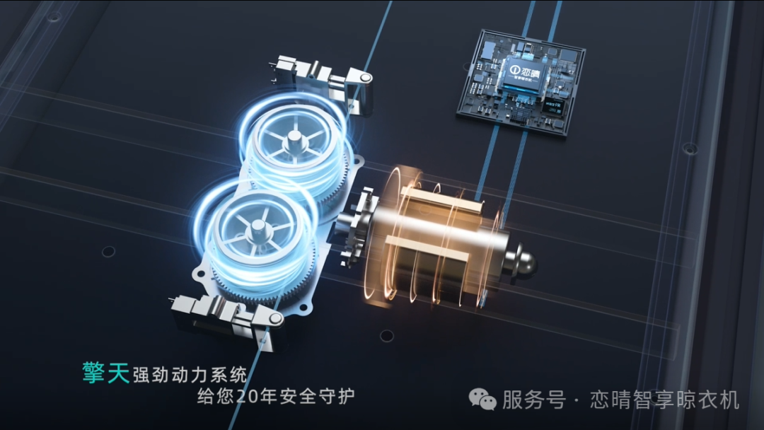 设计环节,工业设计师与结构工程师反复推演,最终敲定 “零嵌入式设计”:机身可完美嵌入阳台吊顶,安装后与空间融为一体,彻底告别传统晾衣机占用垂直空间的问题。动力系统研发更是突破行业瓶颈,“擎天强劲动力系统” 历经12个月的方案迭代,通过6万次启停测试、-20℃至60℃极端环境模拟,最终实现运行噪音≤45分贝、承重达45kg的稳定性能,为“20年安全守护” 奠定核心基础。