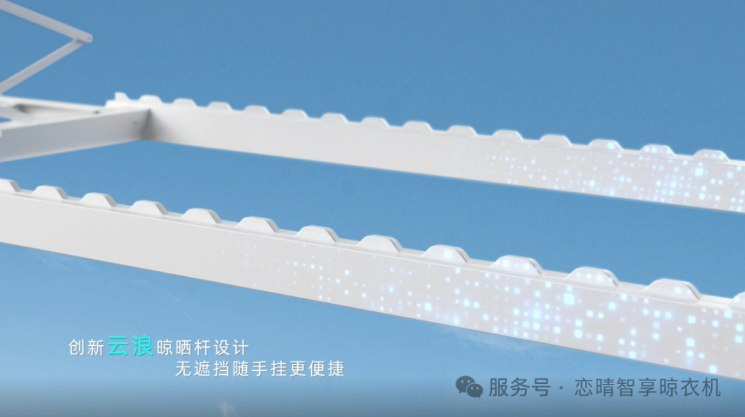 创新云浪晾晒杆,颠覆性便捷体验,人性化设计:传统晾衣杆下方的横杆或支架常常遮挡视线、碰头,挂取衣物时需“弯腰侧身”,极为不便。LQ-9689首创 “云浪晾晒杆”设计,流畅的波浪形结构摒弃了所有不必要的遮挡。从此,您走到晾衣杆前,视野开阔,可以无遮挡地随手挂取衣物,每一个挂孔都清晰可见、触手可及。这不仅是一种便捷,更是对晾晒动作的人体工学优化。