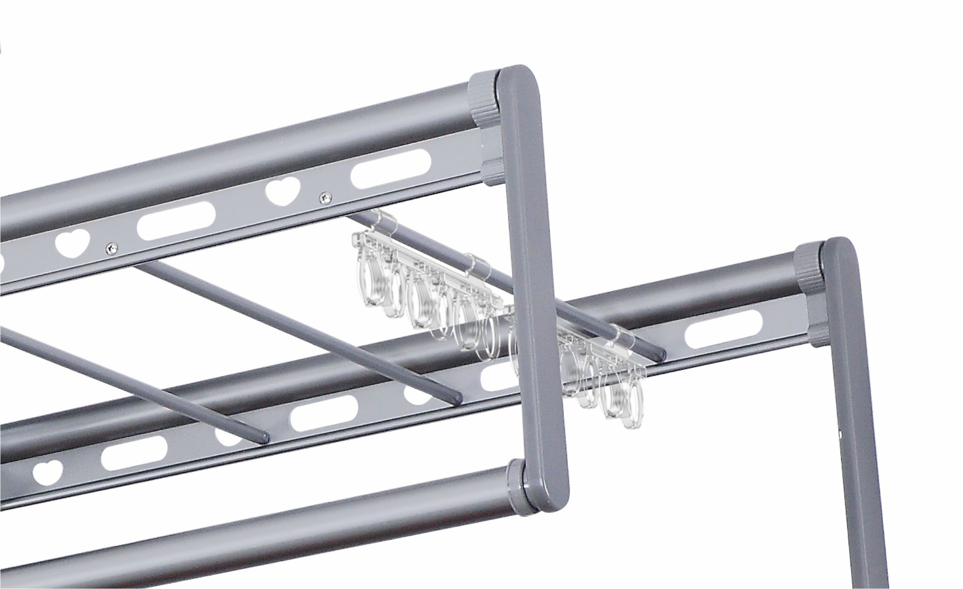 轻抬上升:晾完衣服轻抬晾杆自动上升到顶部,智能便捷