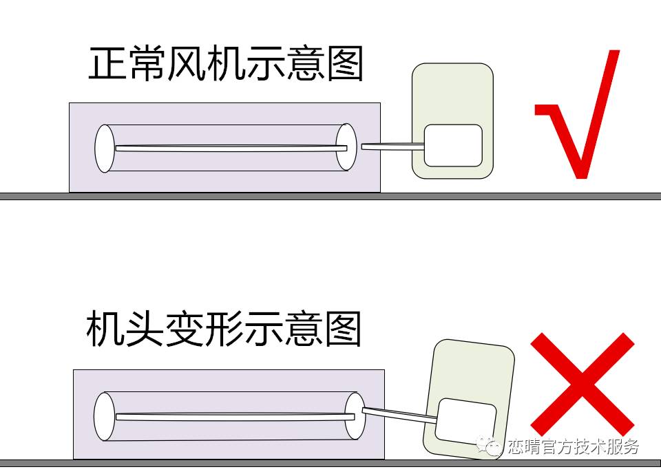 c 如图检查风轮是否与电机不垂直,如有变形(暴力运输问题),用手将机头扳正即可