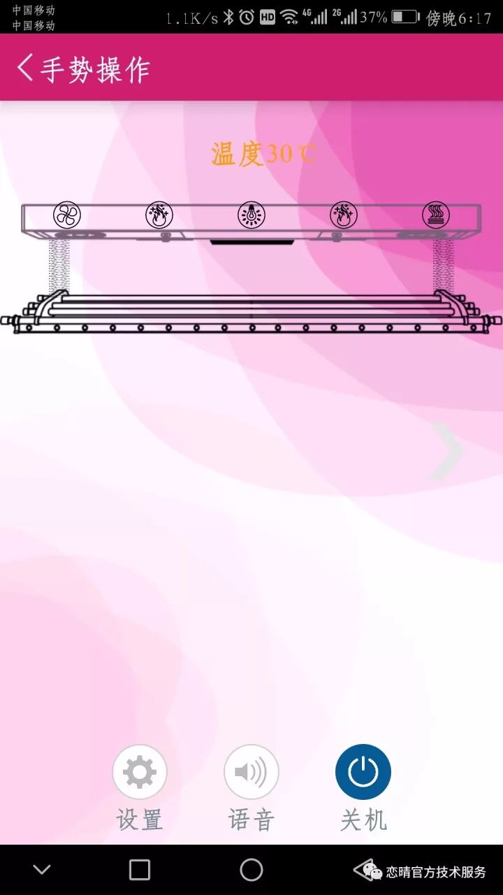 返回后软件自动进入绑定晾衣机状态待绑定成功后自动回到晾衣机设备界面点击该绑定好的智能晾衣机进入手势操控页,