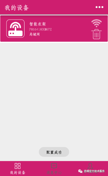 进入软件界面后,点右上角设备配网,确保手机已经连接上可用WiFi信号确保晾衣机关机状态,
