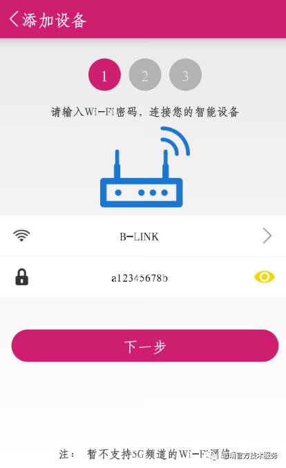 并在同一个WiFi覆盖区域,此时输入WiFi密码按下一步